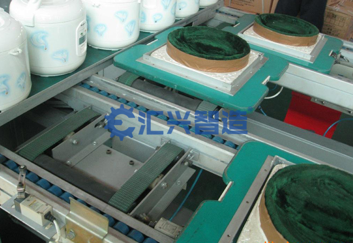 匯興智造電飯煲整廠自動(dòng)化生產(chǎn)線是由各式差速鏈裝配檢測(cè)線、懸掛輸送裝配線、輥道輸送裝配線、鏈板式電機(jī)浸漆線、電飯煲測(cè)試檢測(cè)線組成,另外包括自動(dòng)噴涂設(shè)備、頂升平移機(jī)、打包機(jī)等各類專機(jī)設(shè)備,共同完成電飯煲的生產(chǎn)任務(wù)。