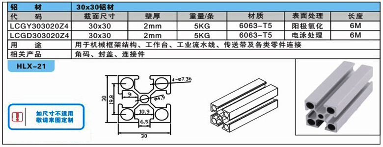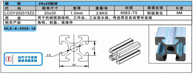 匯興智造工業(yè)鋁型材參數(shù)