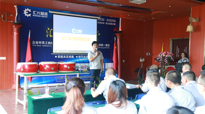 光陰似箭,轉(zhuǎn)眼間,2017年上半年已經(jīng)過去了。在2017年7月1日這個有著諸多紀念意義的日子里,廣東匯興精工智造股份有限公司(股票代碼:839258)月度大會在東莞總部勝利召開,匯興智造董事長鐘輝及公司全體員工精神抖擻、斗志昂揚地參加了此次會議。大會在催人奮進的匯興之歌中拉開了帷幕,人資行政部經(jīng)理袁侃主持本次會議。