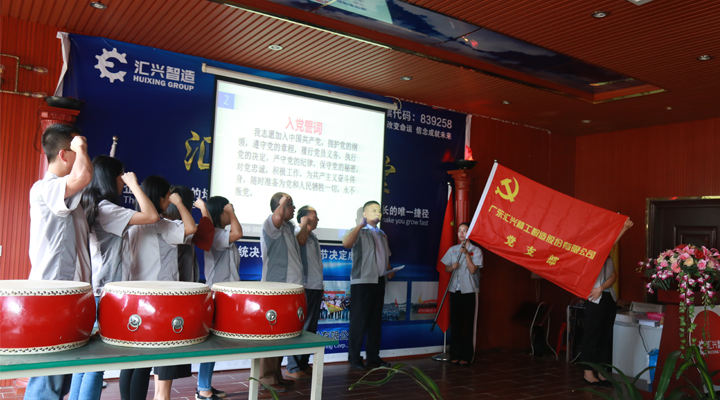 在大會上,匯興智造黨支部全體黨員上臺宣誓,重溫《入黨誓詞》,由匯興智造總工程師許光輝教授領誓,其余黨員們跟誓。在這莊嚴神圣的時刻,全體黨員表達了對中國共產(chǎn)黨的忠誠和信念。