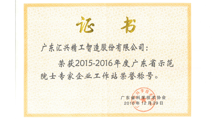 匯興智造廣東省示范院士專家企業(yè)工作站榮譽(yù)證書(shū)