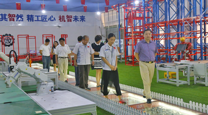 楊副院長(zhǎng)一行在董事長(zhǎng)鐘輝的陪同下參觀了企業(yè)的智能生產(chǎn)線演示、匯興精工智造工業(yè)4.0體驗(yàn)館、工程研發(fā)部信息化組等部門(mén),雙方表示今后要加強(qiáng)對(duì)接,細(xì)化合作內(nèi)容,創(chuàng)造更多的社會(huì)價(jià)值。在參觀過(guò)程中,董事長(zhǎng)鐘輝向一行成員介紹了公司的發(fā)展歷程、經(jīng)營(yíng)業(yè)務(wù)及取得成就,他表示作為掛牌上市公司,始終重視企業(yè)內(nèi)部的人才培養(yǎng)和技術(shù)革新,需要校企之間密切合作,并在不同的專(zhuān)業(yè)和領(lǐng)域搭建多種平臺(tái),促進(jìn)校企間的優(yōu)勢(shì)互補(bǔ)和良性互動(dòng)。