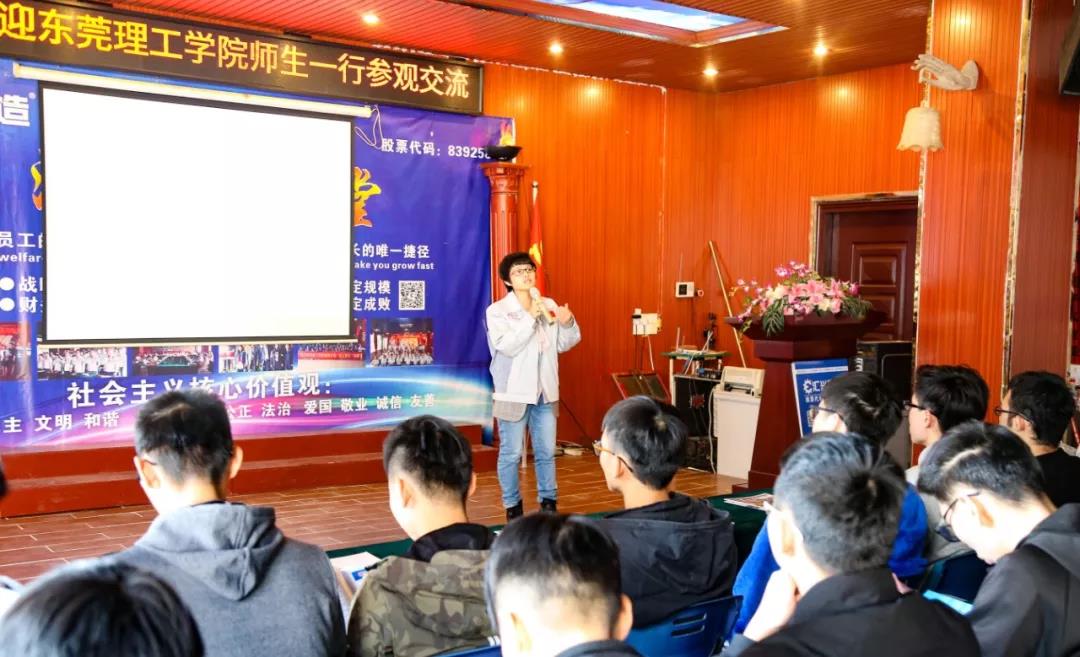 隨后,蔣明華在公司大會(huì)議室向師生們?cè)敿?xì)介紹了公司的發(fā)展歷程、產(chǎn)品特點(diǎn)、核心優(yōu)勢(shì)、企業(yè)文化、人力資源、員工晉升通道等方面的概況,并熱忱歡迎東莞理工學(xué)院學(xué)子來(lái)公司參觀(guān),更歡迎畢業(yè)的大學(xué)生來(lái)公司就業(yè)。
