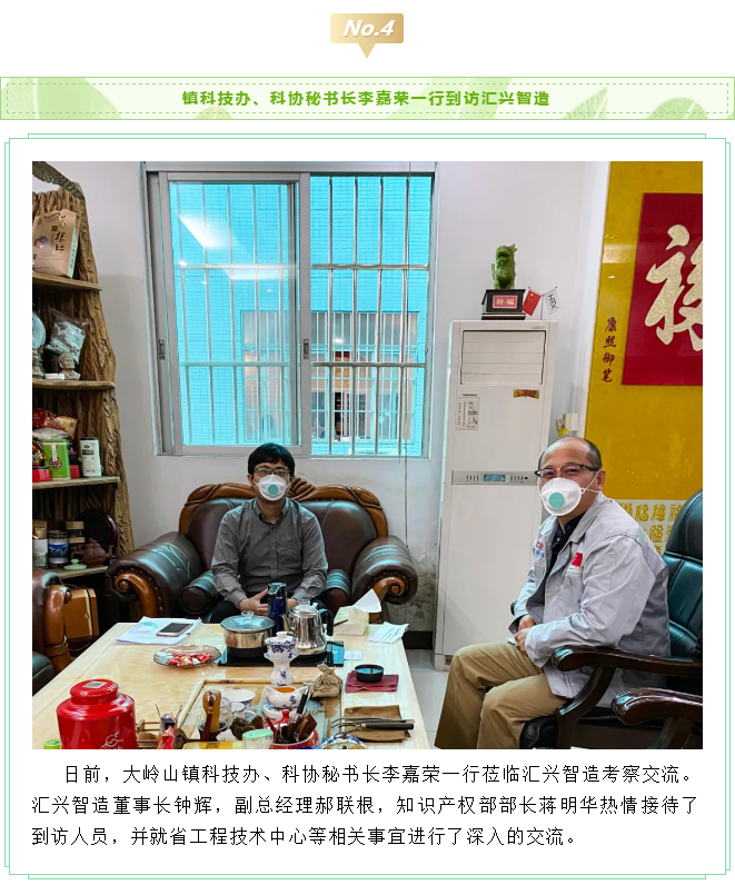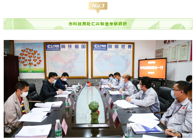2020年3月11日,市科技局副局長黃天梁、科長李耀球、主任科員劉宇豪蒞臨匯興智造考察市重大科技項目攻關情況。匯興智造董事長鐘輝、技術總監(jiān)丁度坤博士、財務總監(jiān)彭理仕,副總經(jīng)理彭大海及知識產(chǎn)權部部長蔣明華等項目相關人員列席了會議。