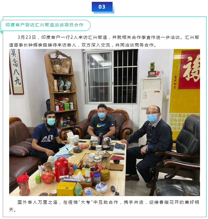德不孤,必有鄰,德不孤,更必有貴客蒞“臨”,謙和為善的匯興智造,結識新朋友,不忘老朋友,這幾天企業(yè)到訪的重要客戶及朋友貴客非常之多,尊長來訪外賓到廠,群賢畢至少長咸集,內(nèi)厚外斂平和達觀的匯興人,廣結善緣,相信會易得善果。