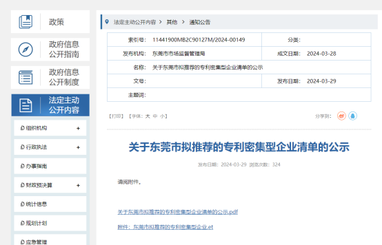近日,東莞市市場(chǎng)監(jiān)督管理局發(fā)布《關(guān)于2024年度東莞市專利密集型企業(yè)擬推薦結(jié)果的公示》,廣東匯興精工智造股份有限公司榮獲2024年“東莞市專利密集型企業(yè)”。